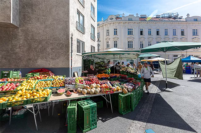 Spielplätze, Kindergärten, Schulen, Supermarkt, Bio-Greißler und Apotheke sind ebenso leicht erreichbar wie das Hietzinger Platzl, das mit seinem wöchentlichen Bauernmarkt zum Ausprobieren regionaler Köstlichkeiten lockt.